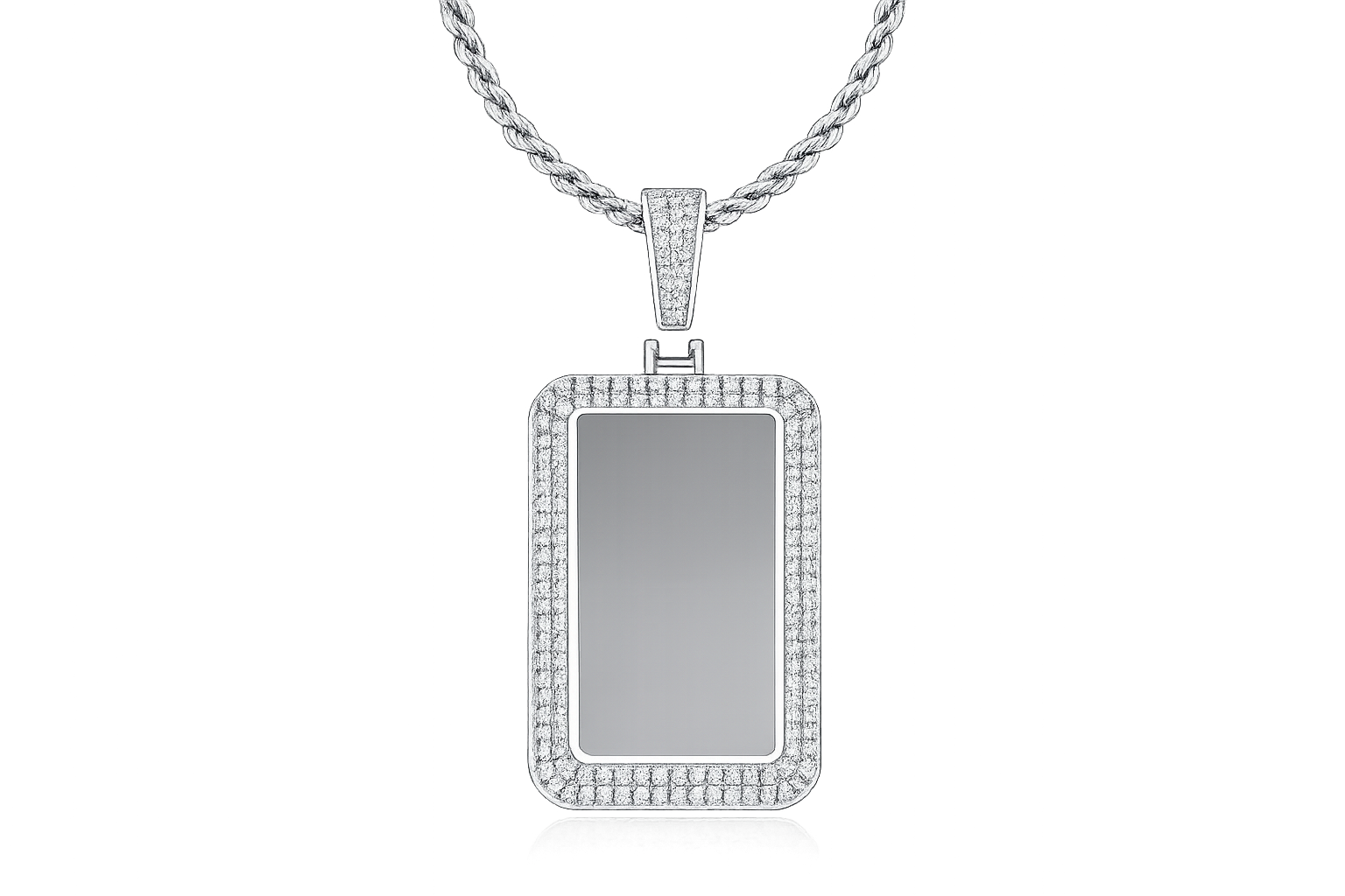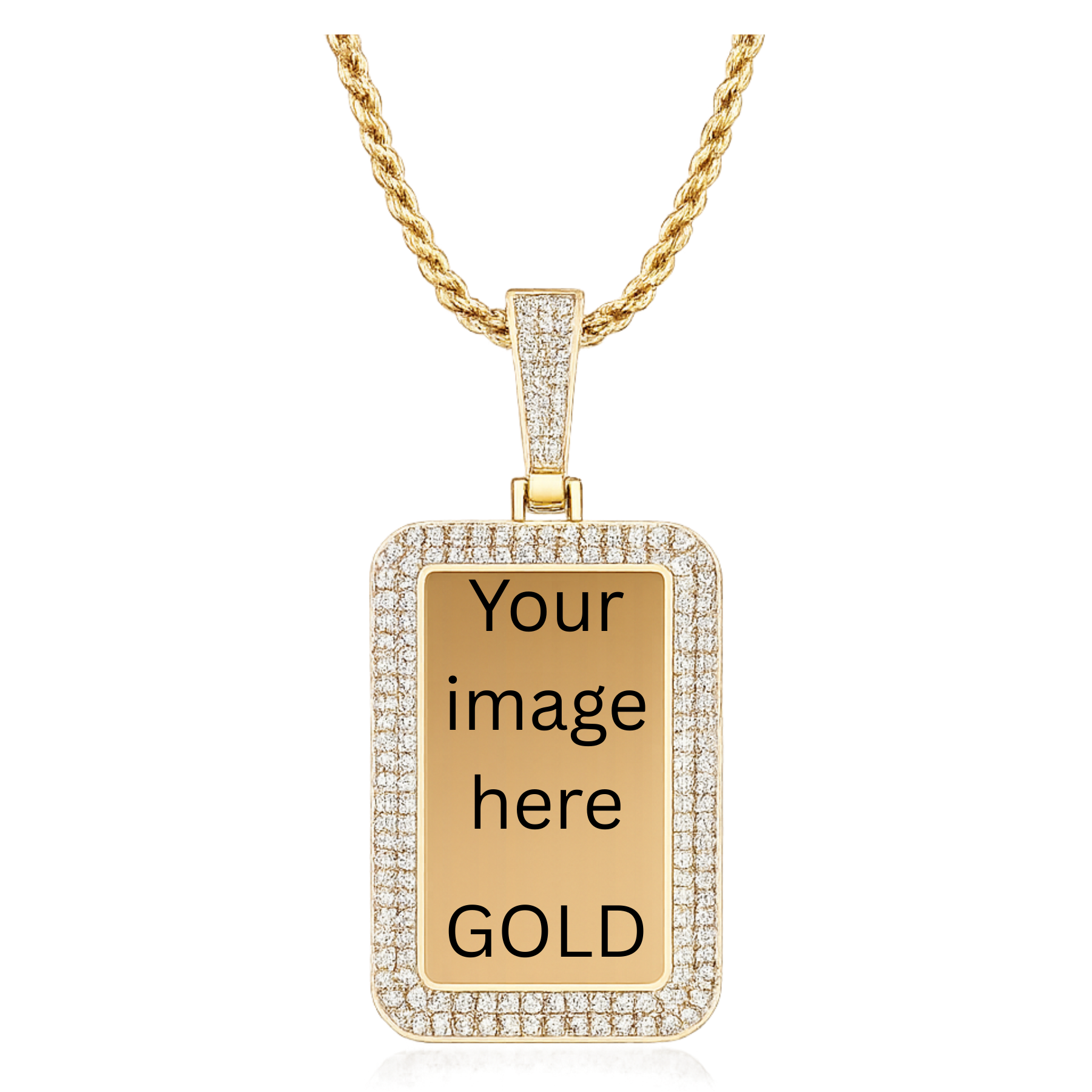 Custom Premium rectangular (dog tag) luxury photo necklace FREE led gift light box & adjustable tennis necklace