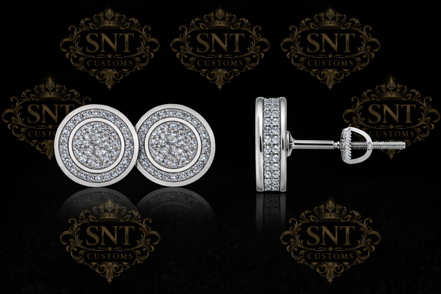 Add timeless shine to your everyday look with these round pavé diamond stud earrings. Designed with a double-halo circle and brilliant clustered stones, these studs deliver a bold sparkle while keeping a classic, elegant feel.